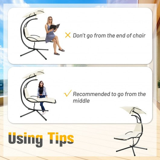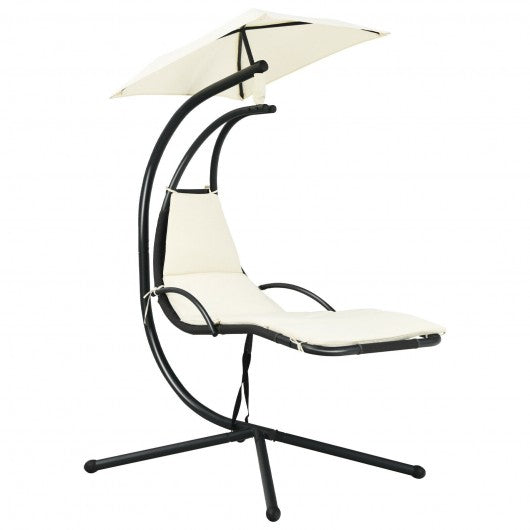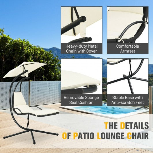 Patio Hanging Hammock Chaise Lounge Chair with Canopy Cushion for Outdoors-Beige