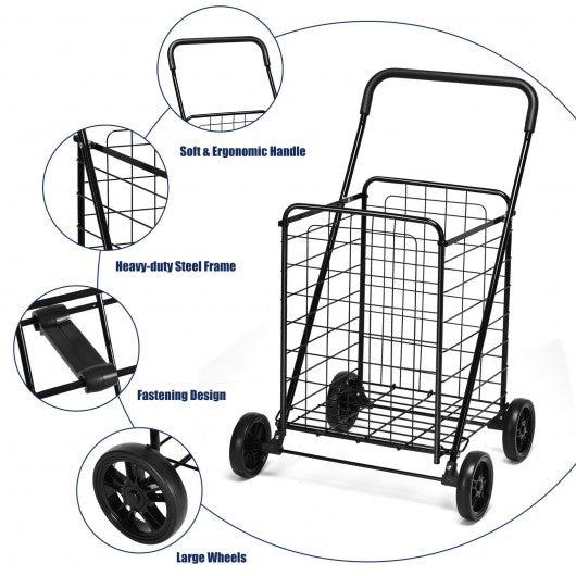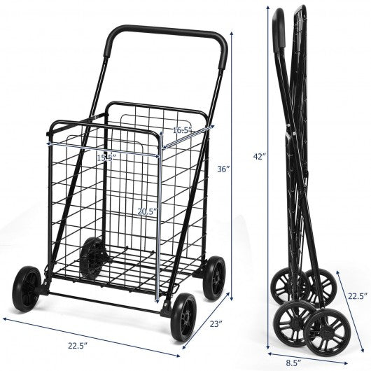 Portable Folding Shopping Cart Utility for Grocery Laundry-Black