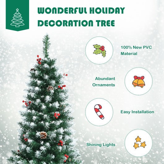 Pre-lit Artificial Pencil Christmas Tree with Pine Cones and Red Berries-7 ft