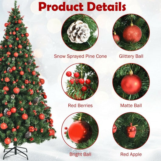 Pre-lit Christmas Hinged Tree with Red Berries and Ornaments-7 ft