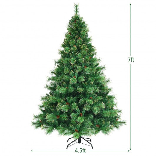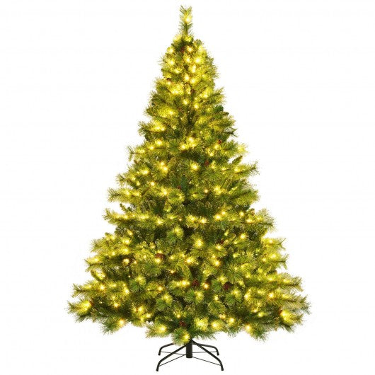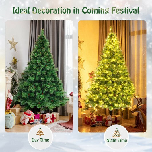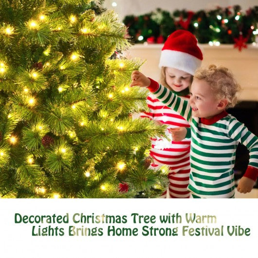 Pre-lit Hinged Christmas Tree wth Glitter Tips and Pine Cones
