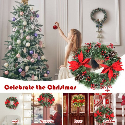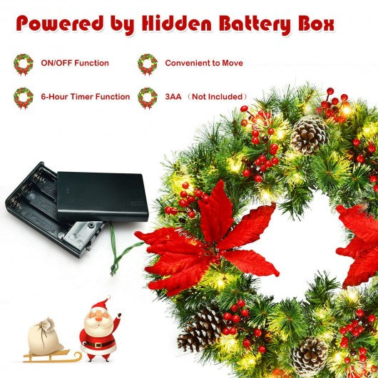 Pre-lit Snow Flocked Christmas Wreath with 50 LED Lights