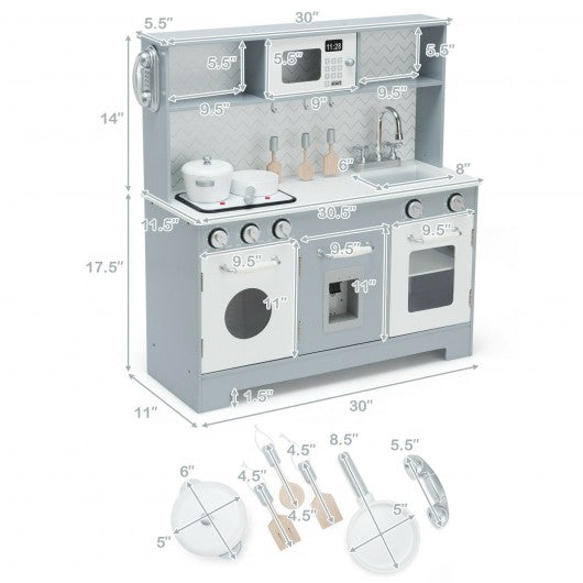 Pretend Play Kitchen Wooden Toy Set for Kids with Realistic Light and Sound