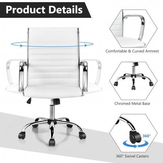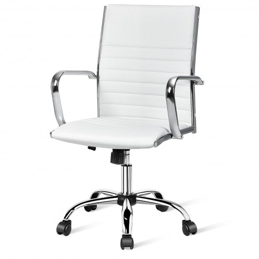 PU Leather Office Chair High Back Conference Task Chair with Armrests-White