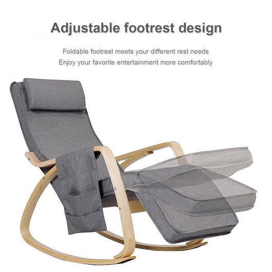 Relax Adjustable Lounge Rocking Chair with Pillow and Pocket