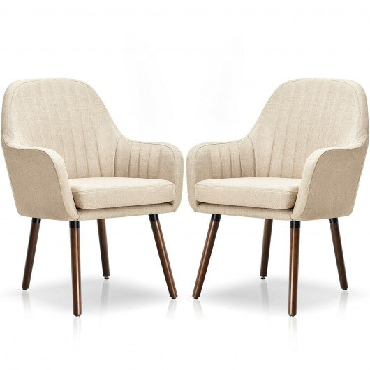 Set of 2 Fabric Upholstered Accent Chairs with Wooden Legs-Beige
