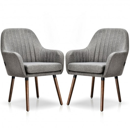 Set of 2 Fabric Upholstered Accent Chairs with Wooden Legs-Gray