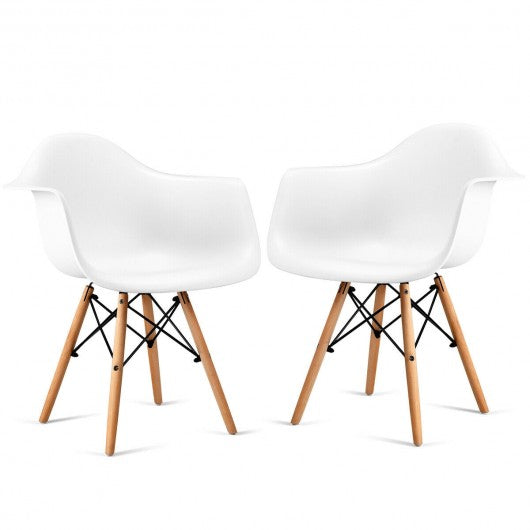 Set of 2 Mid-Century Dining Arm Chairs with Wood Legs