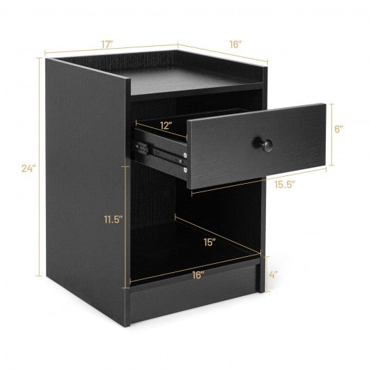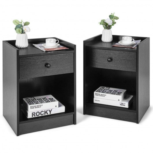 Set of 2 Nightstand with Drawer Cabinet End Side Table Raised Top-Black