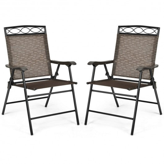Set of 2 Patio Folding Chairs Sling Portable Dining Chair Set with Armrest