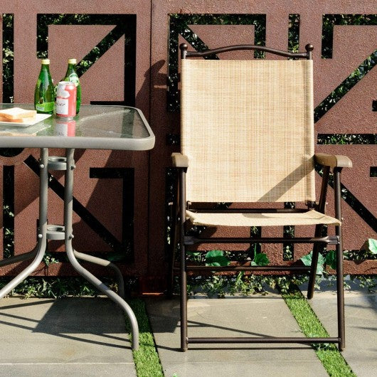 Set of 2 Patio Folding Sling Back Camping Deck Chairs-Beige