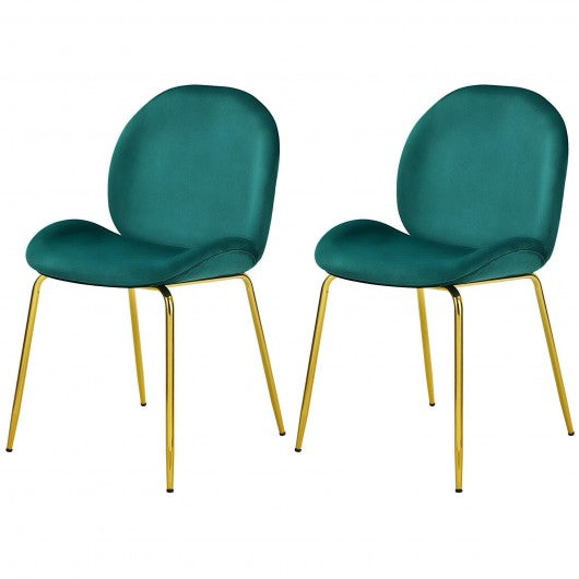 Set of 2 Velvet Accent Chairs with Gold Metal Legs-Green