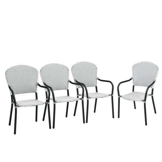 Set of 4 Patio Rattan Stackable Dining Chair with Armrest for Garden-White