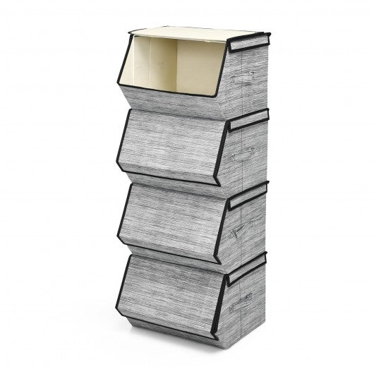 Set of 4 Storage Bins Stackable Cubes with Lid-Black