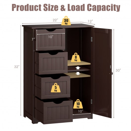 Standing Indoor Wooden Cabinet with 4 Drawers-Brown