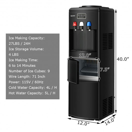 Top Loading Water Dispenser with Built-In Ice Maker Machine-Black