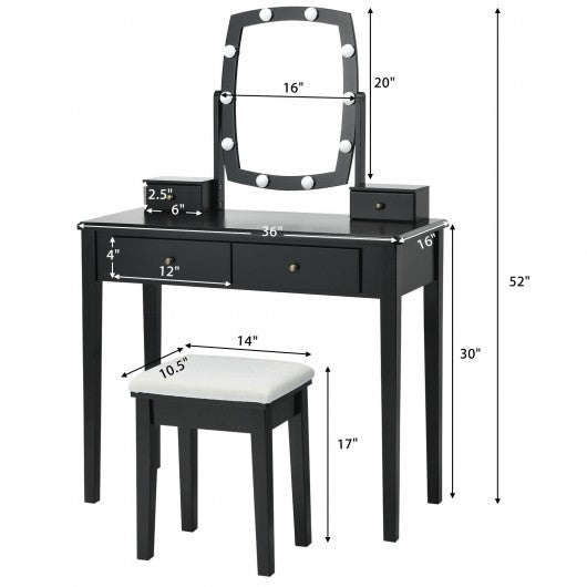 Vanity Table Set with Lighted Mirror for Bedroom and Dressing Room-Black