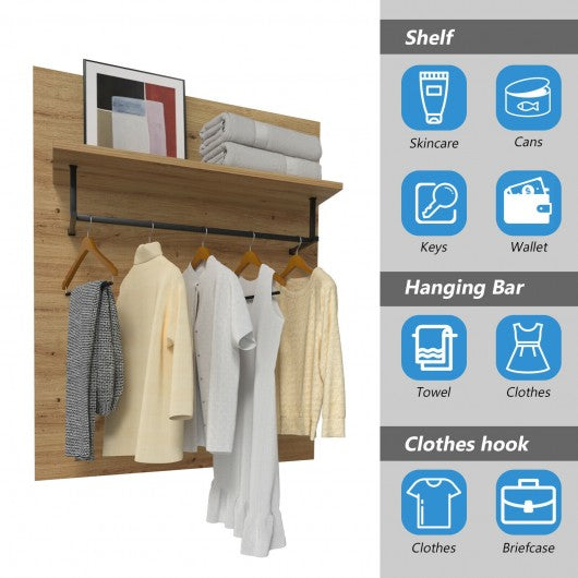 Wall-Mounted Clothes Hanger Rack Shelf with 5 Hooks and Hanging Rod