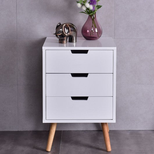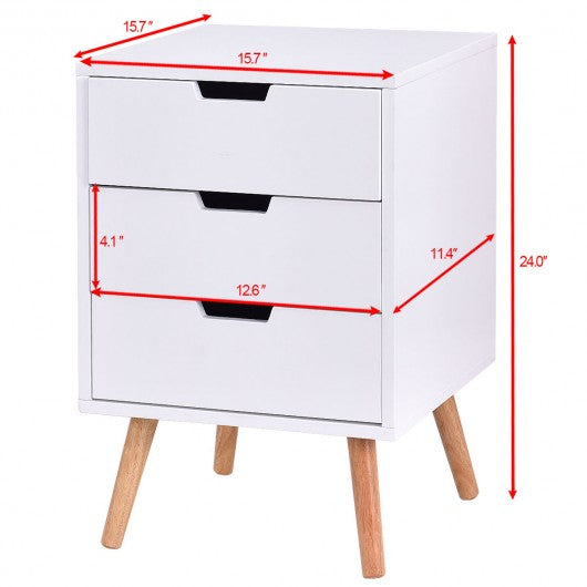 White Wood Side End Table Nightstand W-3 Drawers Mid-Century Accent