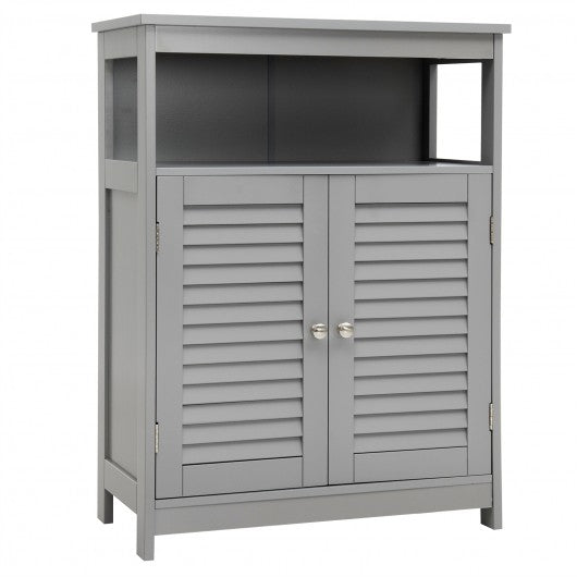 Wood Freestanding Bathroom Storage Cabinet with Double Shutter Door-Gray