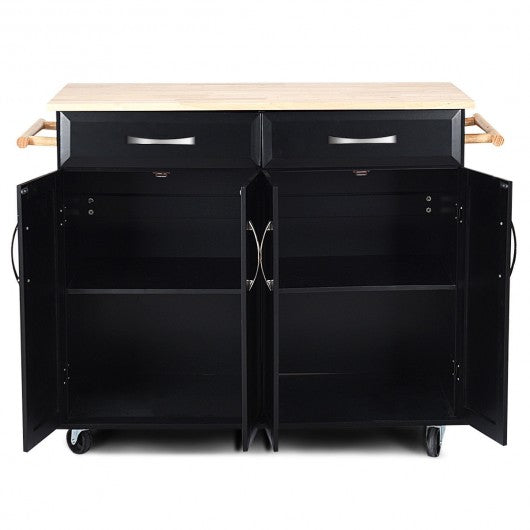 Wood Top Rolling Kitchen Trolley Island Cart Storage Cabinet