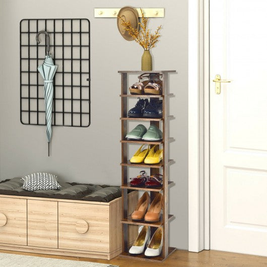 Wooden Shoes Storage Stand 7 Tiers Shoe Rack Organizer Multi-shoe Rack Shoebo-Rustic Brown