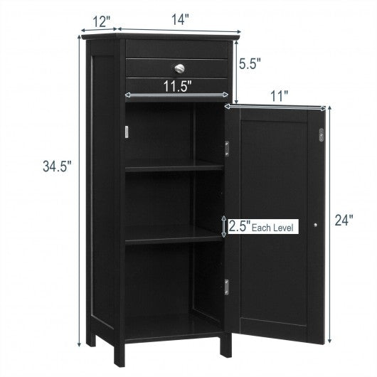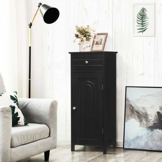 Wooden Storage Free-Standing Floor Cabinet with Drawer and Shelf-Black